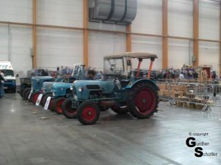 2 Schlepper der Historischen Landtechnik Rheinhessen waren auch dabei, der Allgaier vom Herbert und der Bulli von Frank und Fabian. In der Halle war ein Teilemarkt und auch einiges an Landtechnik der vergangenen Zeiten zu sehen, das Außengelände war den angereisten Schleppern vorbehalten. Es gab auch eine tolle Vorstellung der Schlepper, ja das war schon Klasse,