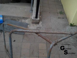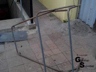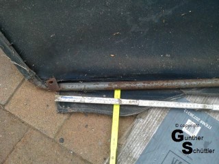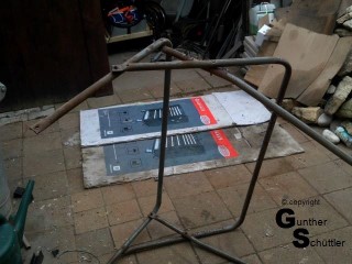 Ja acht Schrauben sind machbar, und damit das Ganze Stabilität bekommt wäre ein Umsturtbügel als hintere Befestigung schon eine tolle Sache. Also erst ein Umsturzbügel bauen, der gerade noch durch die Durchfahrt in der Garage passt, Scheibe anbauen und Halterungen für das Verdeck an den Umsturzbügel anbringen.