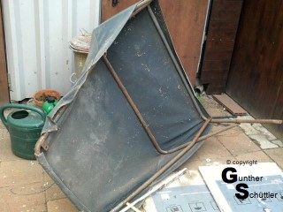 Es gab also ein Gestell mit Scheibe und ein Dach mit einer Plane die nicht passt.