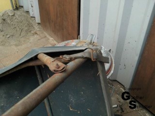 Aber es lässt sich etwas daraus machen, das Gestell findet an der Frontlader Konsole seinen halt und das eingeschraubte Dach bringt dann die Stabilität.
