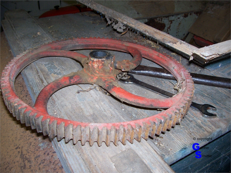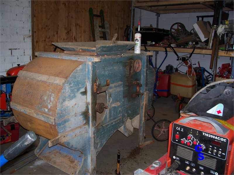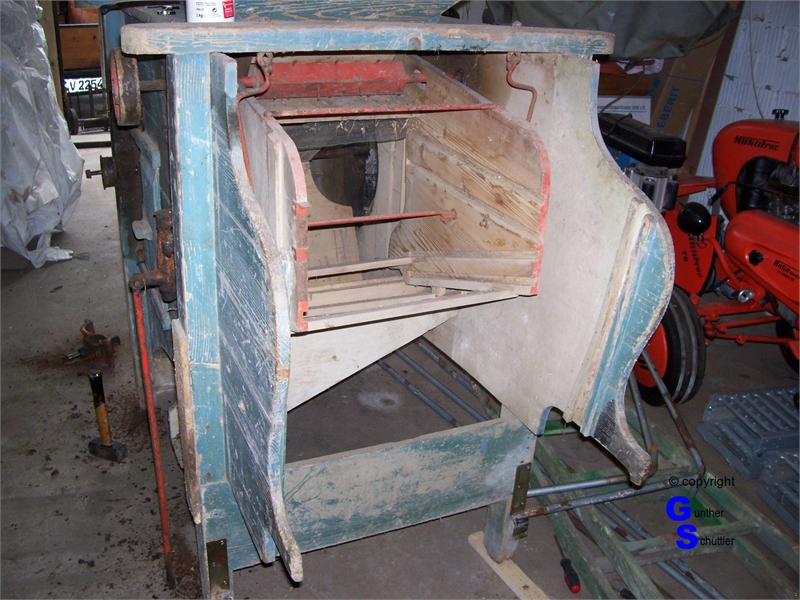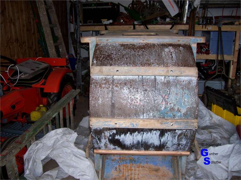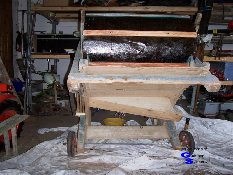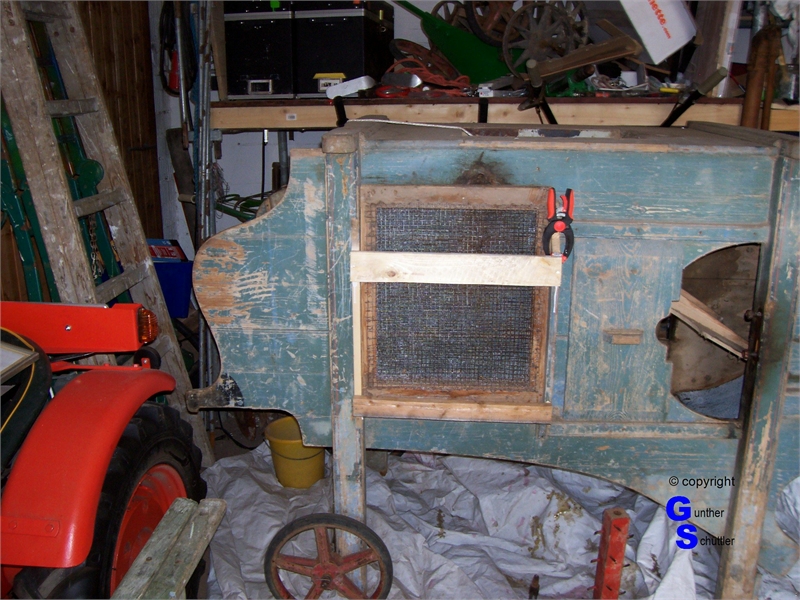 Windfege sorgsam untersucht, es waren Arbeiten an den Holzteilen notwendig, auch fehlten einige Siebe.