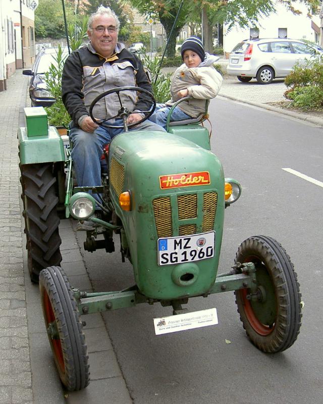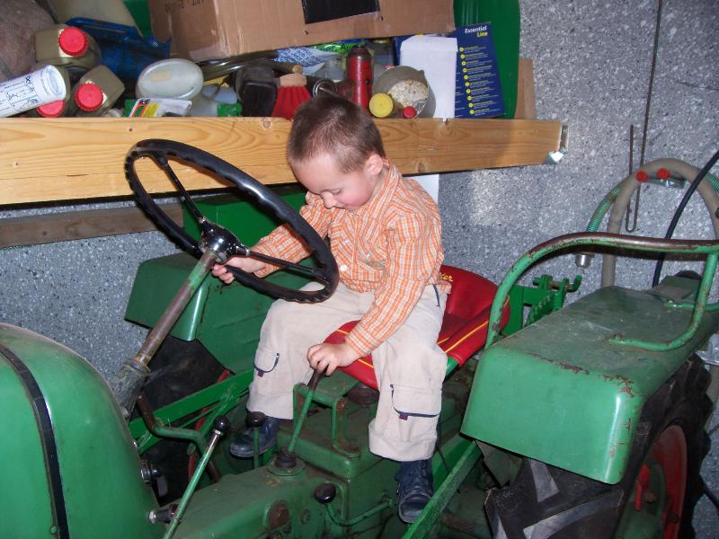 Vor der Garage erfreute er sich an den kleinen Traktoren. Das geht aber nicht ewig so, es kommt der Tag da verliert er seine Scheu, das geschah dann beim Museumsfest im Kellerweg. Mit Freude sah ich den kleinen Moritz erst auf dem einen und dann auf dem anderen Holder.